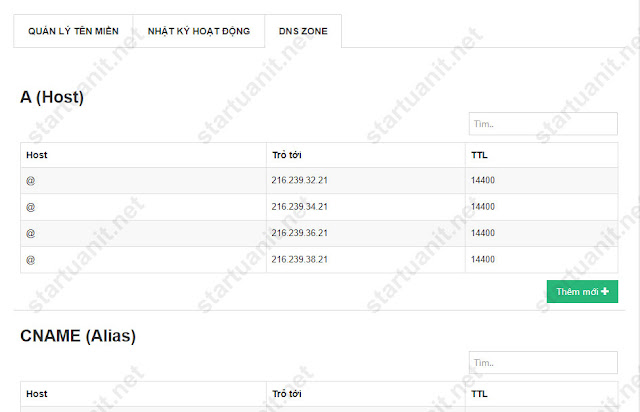 Bạn để ý vào phần A(Host) được trỏ vào 4 IP: